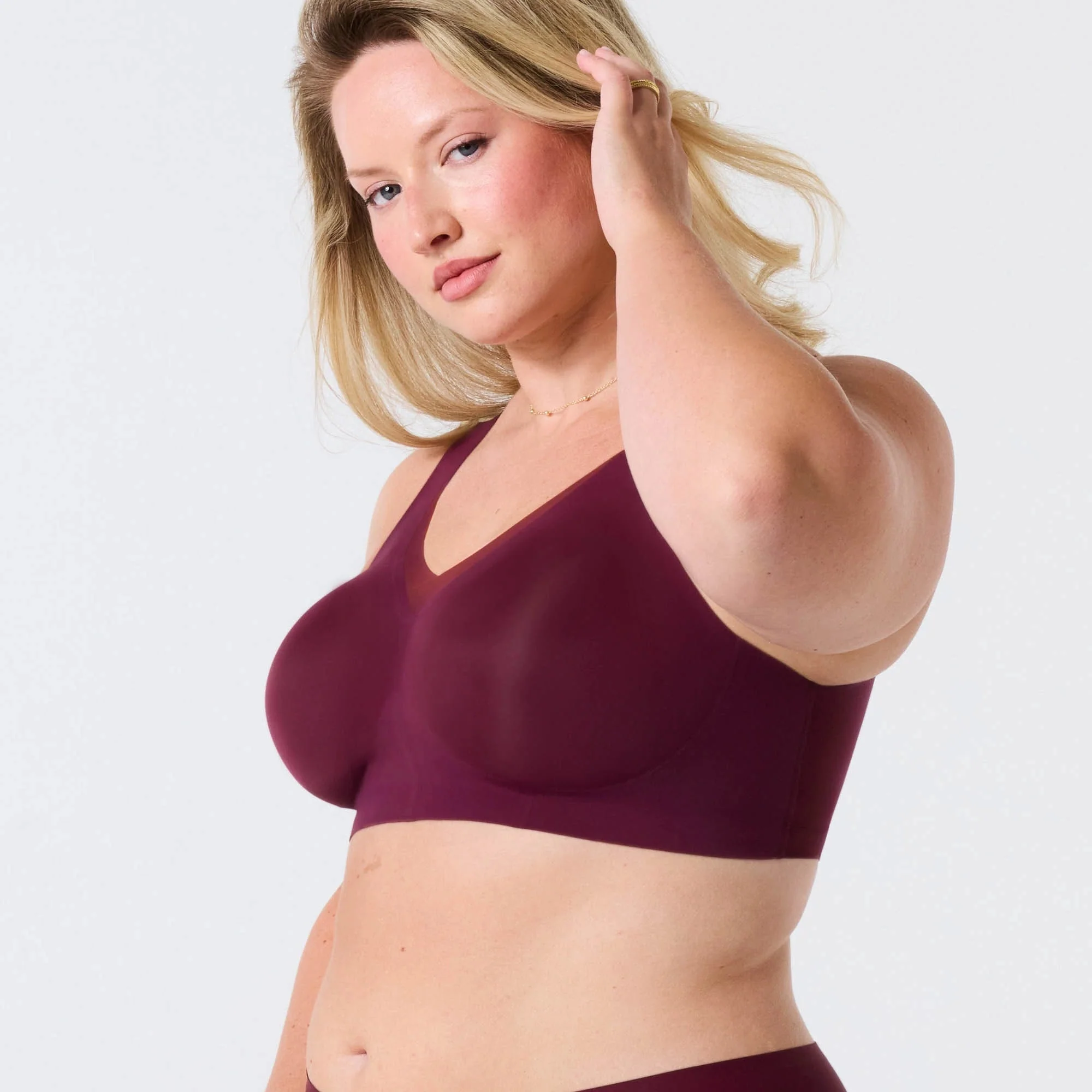 Timeless elegance, reimagined wirefree. The Evelyn pairs a scalloped V-neckline with our ultra-lift bodice for a naturally defined shape. Smoothing from front to back, this bra is both flattering and functional, making it a wardrobe staple that combines modern innovation with classic beauty.